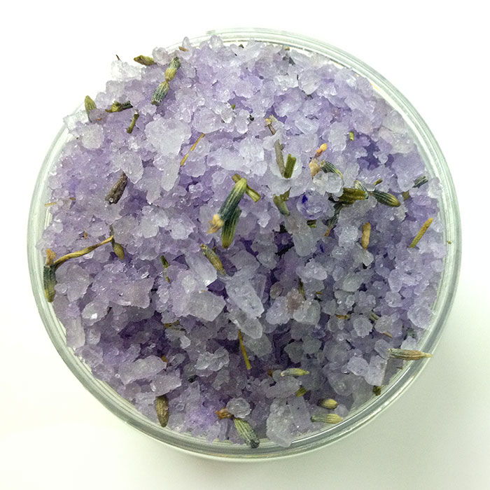 El secret: (INCI) Magnesium Sulfate (Epsom), Maris Sal (Dead Sea), Coarse Maris Sal, Viola Odorata Oil, Lavandula Angustifolia Oil, Pogostemon Cablin Leaf Oil . Lavander flowers. Mica. Molt d’amor.